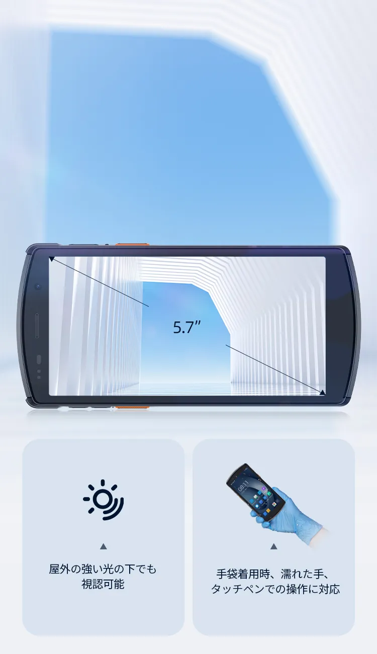 大型2.5Dベゼルレスディスプレイ、フルHD解像度で、強い屋外の日差しの下でも視認可能。